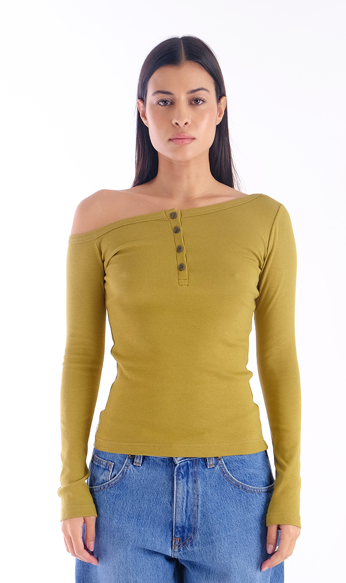 Ανανεώστε τη γκαρνταρόμπα σας με αυτό το κομψό και άνετο off-shoulder top, ιδανικό για κάθε εποχή. Η κανονική γραμμή του προσφέρει άνεση και ελευθερία κινήσεων, ενώ το rib ύφασμα προσδίδει εξαιρετική εφαρμογή και υφή, αναδεικνύοντας τη σιλουέτα σας με φυσικό και διακριτικό τρόπο. Η ανοιχτή περιοχή στους ώμους δημιουργεί μια θηλυκή αίσθηση, κάνοντάς το ιδανικό για συνδυασμούς με τζιν, φούστες ή sweatpants.