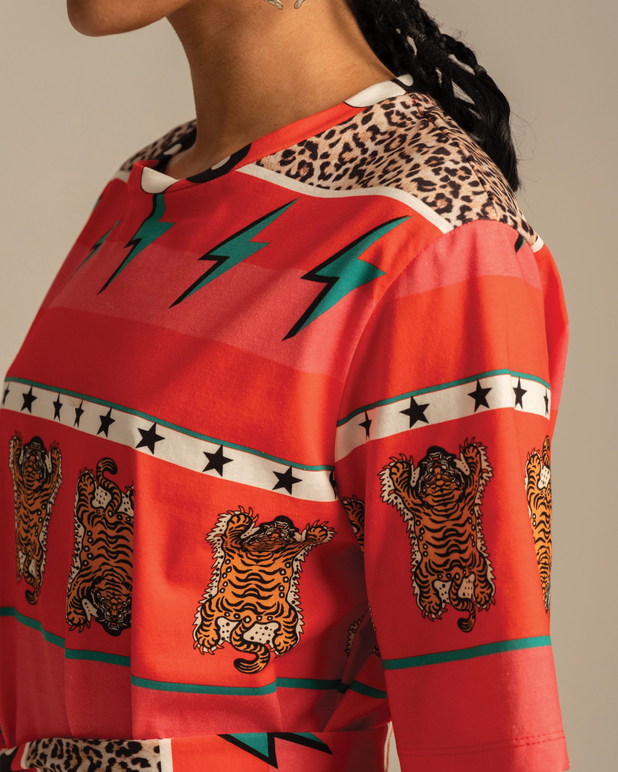 Το Equinox Long Dress έχει σχεδιαστεί για άνετη εφαρμογή και μπορείτε να το φορέσετε με ή χωρίς τη ζώνη του. Είναι φτιαγμένο από 100% βαμβακερό jersey, με ένα τολμηρό print της P+C που εκφράζει την ισορροπία, την ειρήνη και τη δύναμη. Οι αποχρώσεις του σε κόκκινο και animal print προσθέτουν χρώμα και άνεση στην ανοιξιάτικη γκαρνταρόμπα σας.