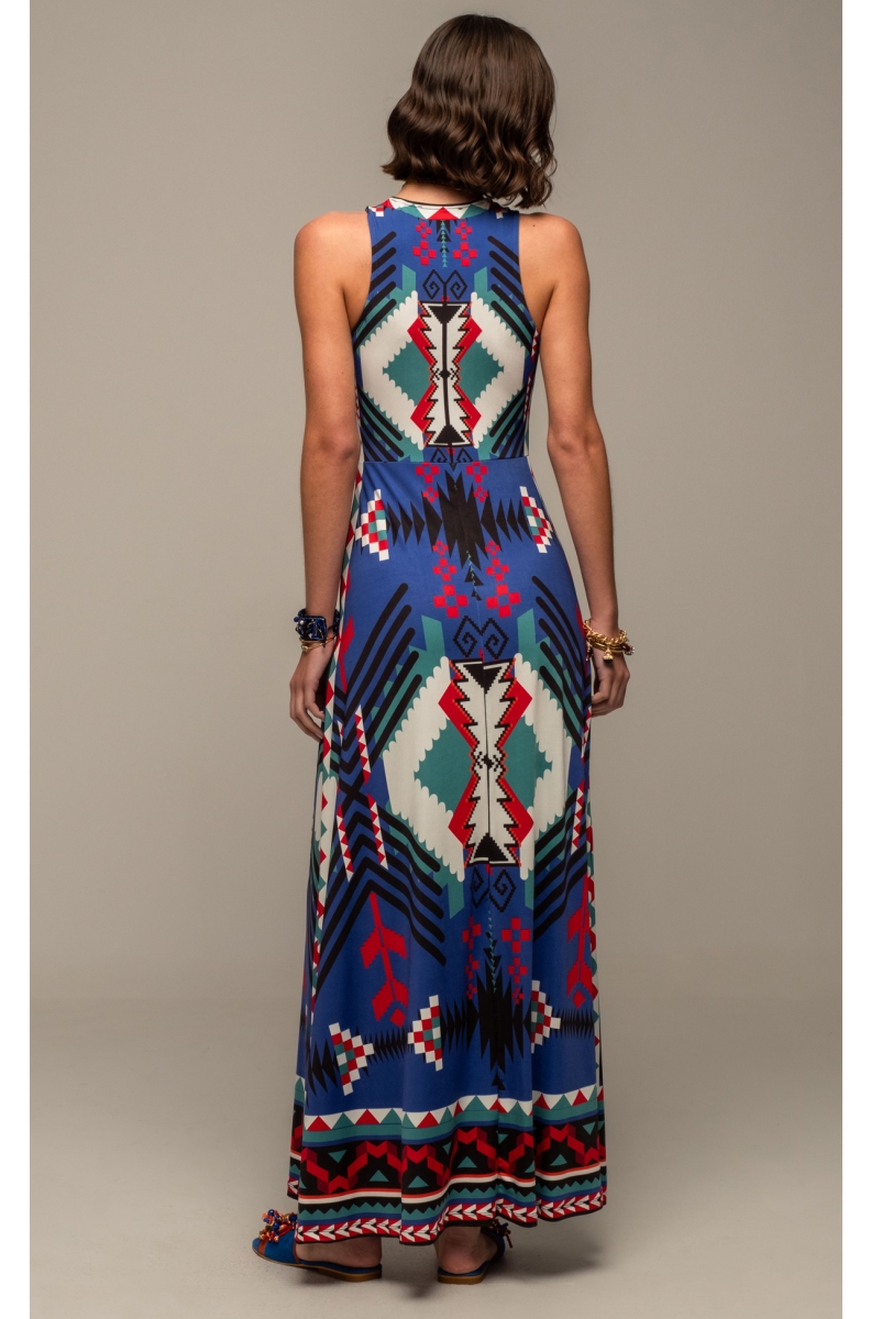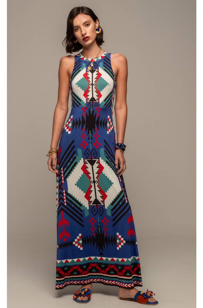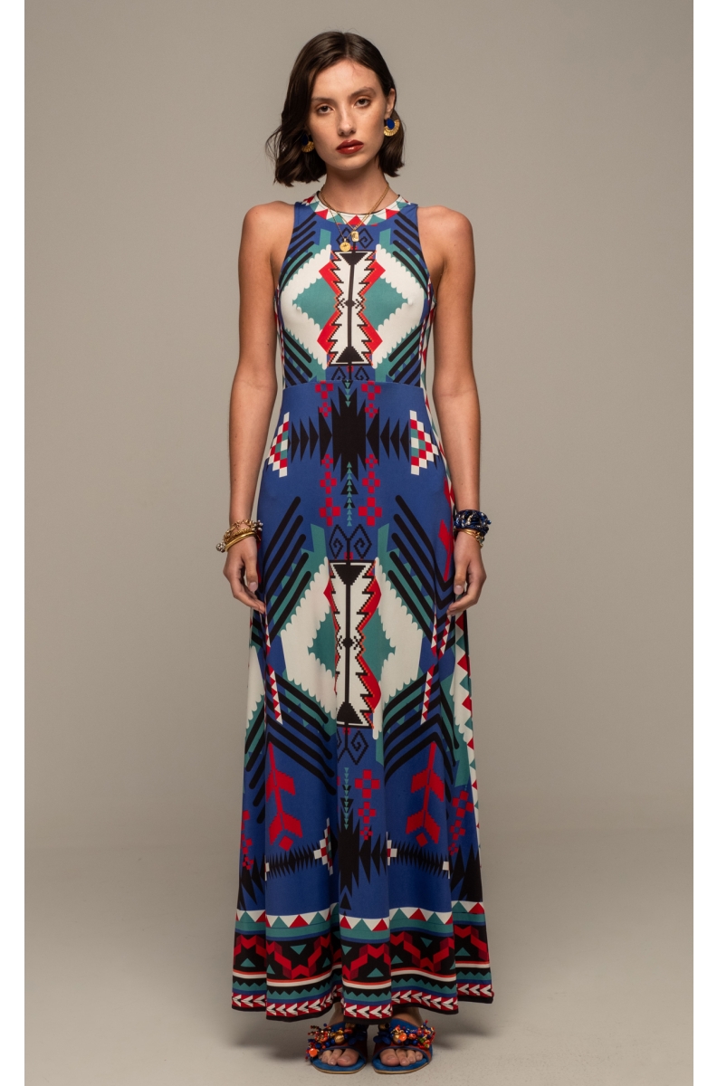 Το Immersion Long Dress είναι φτιαγμένο από μαλακό, ελαστικό ζέρσεϊ που εφαρμόζει όμορφα στο σώμα και ανοίγει σε Α-γραμμή. Το γεωμετρικό του σχέδιο σε έντονα χρώματα τονίζει τη μέση, ενώ η αμάνικη λαιμόκοψη halter αναδεικνύει τους ώμους. Ένα κομψό και εντυπωσιακό φόρεμα, ιδανικό για καλοκαιρινές βραδιές.