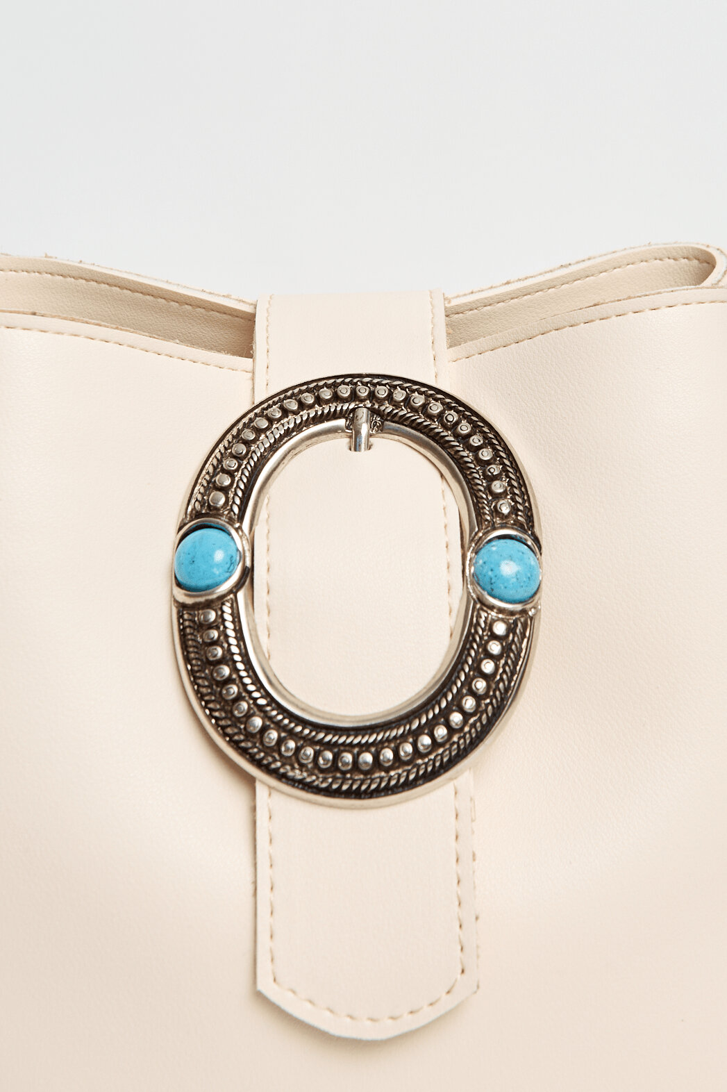 Κατασκευασμένο από ανακυκλωμένο δέρμα το οποίο προκύπτει από συνθετικό δέρμα και στοιχεία γνήσιου. Το κλείσιμο γίνεται με μαγνήτη. Με μεταλλική αγκράφα διακοσμημένη με turquoise πέτρα . Διαθέτει εσωτερική βοηθητική τσέπη. Με επένδυση γκρι αδιάβροχης φόδρας.