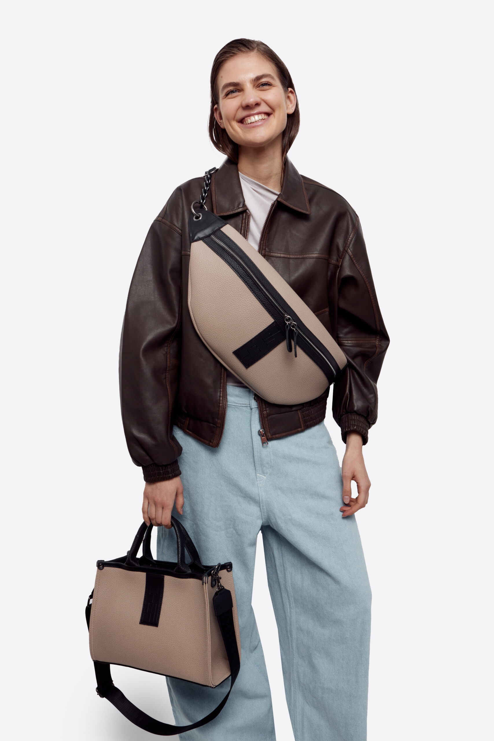 • Vegan leather and genuine leather elements