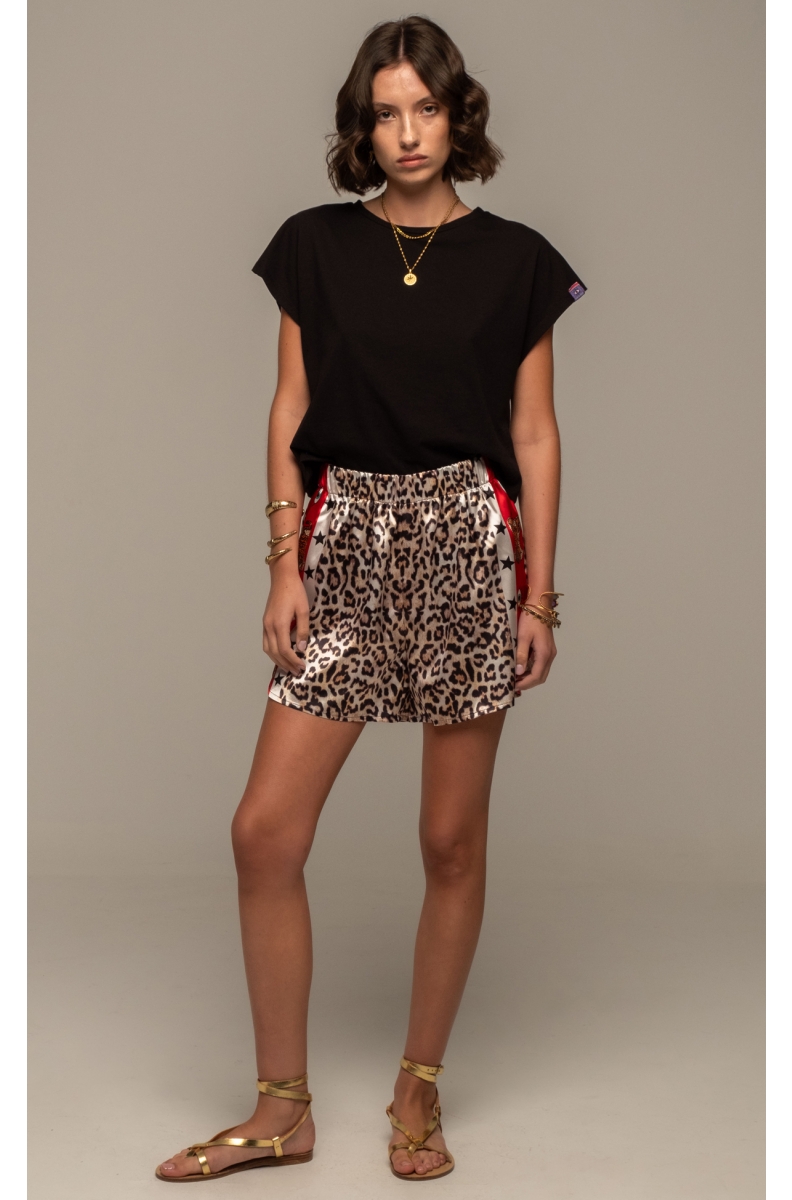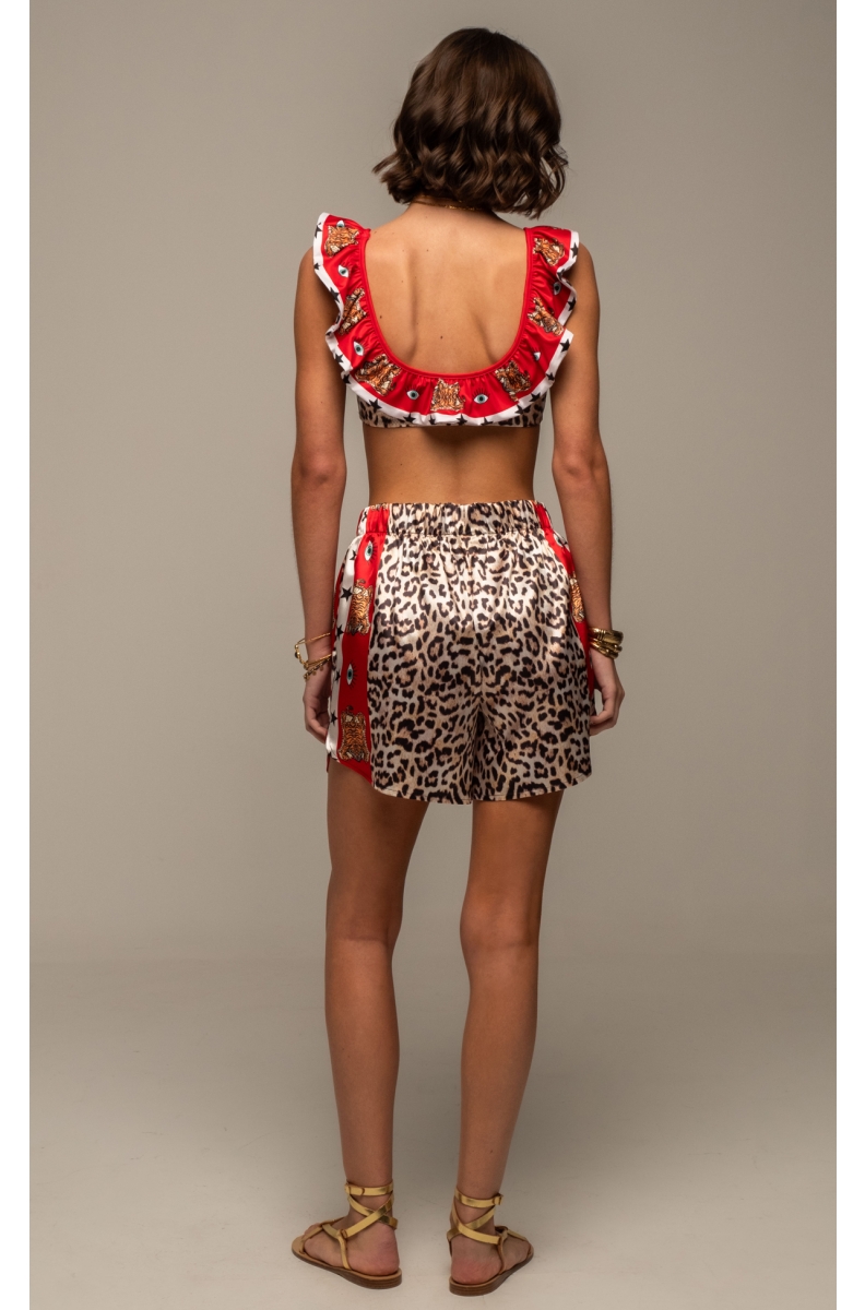 Το animal print σε ανάλαφρο σατέν ύφασμα συναντά τη φαρδιά ελαστική μέση στο Menagerie Shorts. Με στρογγυλεμένα τελειώματα και κόκκινη print λεπτομέρεια στο πλάι, αυτό το σορτς σε boxing στυλ, συνδυάζει δυναμισμό με άνεση. Φορέστε το με το ασορτί Menagerie Bikini για ένα ξεχωριστό look.
