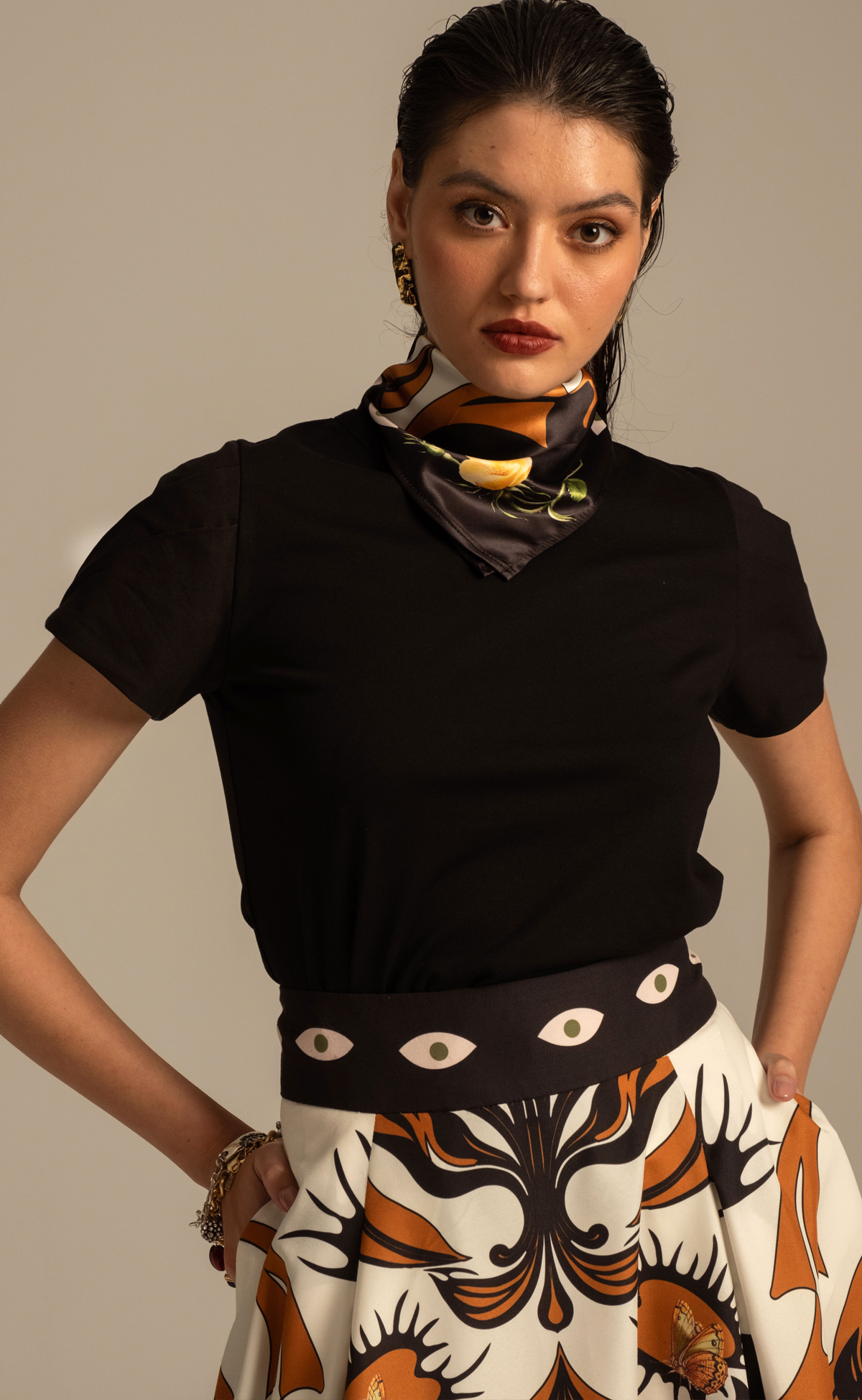 Τα μανίκια σε σχέδιο οριγκάμι από βαμβακερό βουάλ προσδίδουν κομψότητα στο 100% βαμβακερό Tulip Top μας. Διαθέσιμο σε μαύρο και λευκό χρώμα, μπορεί να φορεθεί με παντελόνια, σορτς ή φούστες από την P+C συλλογή. Συνδυάστε το με την Karmic Denim συλλογή και τα σατέν φουλάρια P+C για μια ανανεωμένη και ιδιαίτερη εμφάνιση.